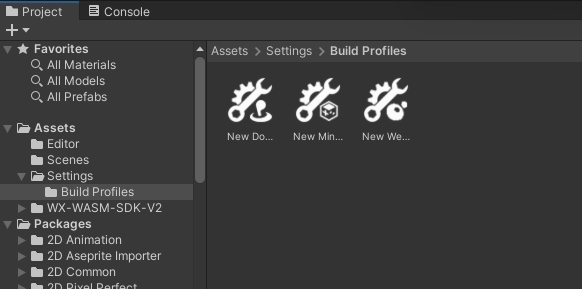 string buildProfilePath = "Assets/Settings/Build Profiles/WeChat_Debug.asset";