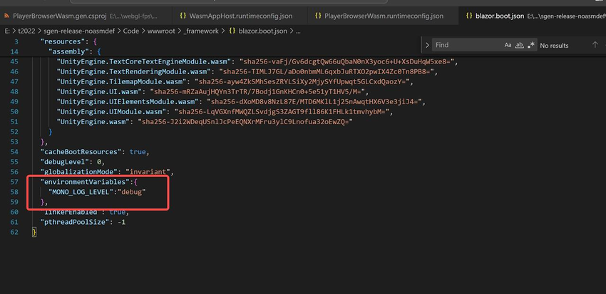 Code/wwwroot/_framework/blazor.boot.json 添加参数,开启 MONO LOG,并在Browser console中定位问题dll