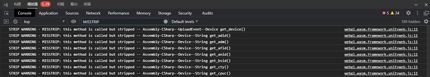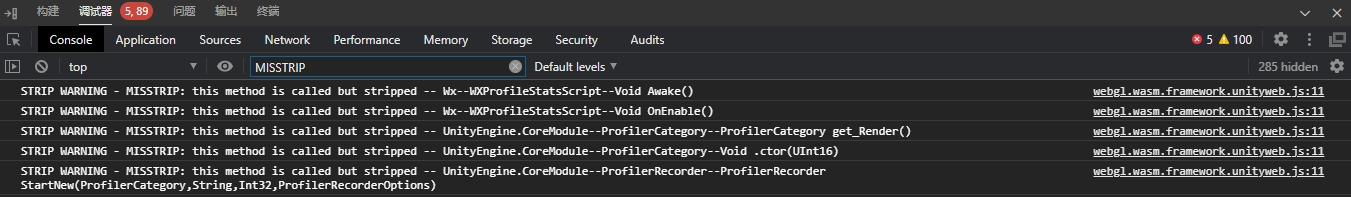 例如微信 SDK 组件挂载问题:某些类型如 WXProfileStatsScript 通过 AddComponent(Type) 挂载,由于类型变量在其他地方赋值,编译时无法确定,导致该类型无法保留。Dryrun 模式下,将打印相应的警告: