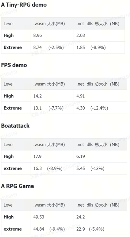 托管代码精简可以缩减构建后的托管程序集的大小,进而减少wasm包的大小,因此对于 il2cpp backend 优化效果较明显。 对于 .net 8 backend 则作用不大,因为托管程序集本身体积就不大,缩减的收益不大。