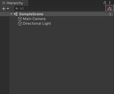 选择后,一个图标会出现在 Hierarchy 窗口中,允许在 Transform 排序(默认值)或 Alphabetical 排序之间切换。