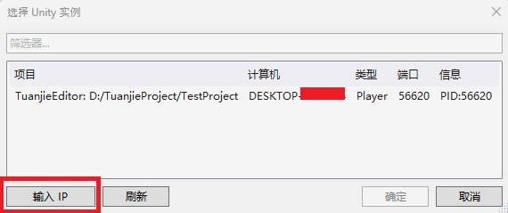 如果没有找到需要的 Tuanjie 实例,也可以通过输入 IP 和 端口号来进行连接,点击下图选项