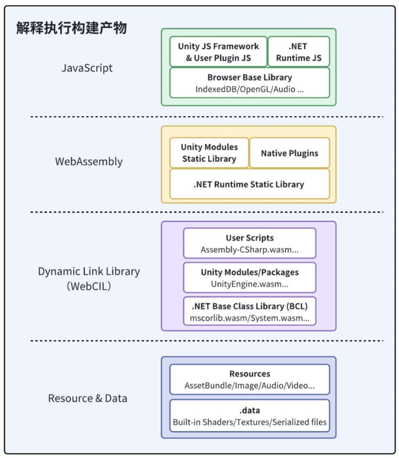 • assembly:即 WebCILs,从 dll 转化而来,包含 User Script、Unity Modules/Packages 和 .NET BCL 等。