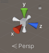 The Scene Gizmo appears in the Scene view. This displays the Scene view Camera’s current orientation, and allows you to change the viewing angle and projection mode.