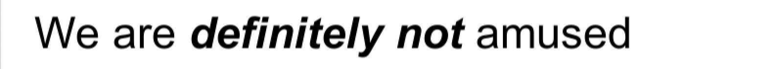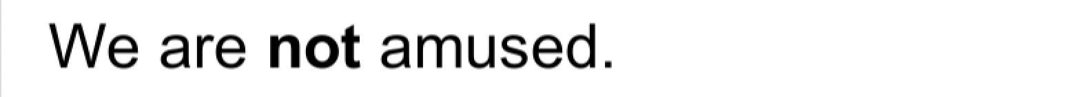 b 以粗体显示文本。 We are <b>not</b> amused.