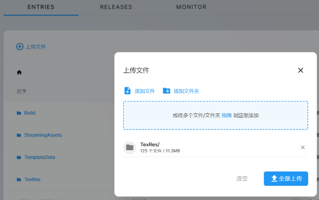注: 如游戏内有打包的 AssetBundle,请一同上传到 CDN 上。