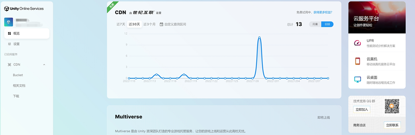 如您的小游戏中使用了 Auto StreamingUnity Addressable 功能,UOS CDN可以提供便捷的资源托管和分发服务。 使用前请按照以下流程开通UOS CDN服务: