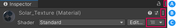 Edit Shader Open the source file for the shader asset that this Material uses.