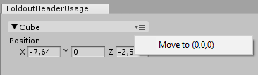 // Create a foldable header menu that hides or shows the selected Transform position. // If you have not selected a Transform, the Foldout item stays folded until // you select a Transform.