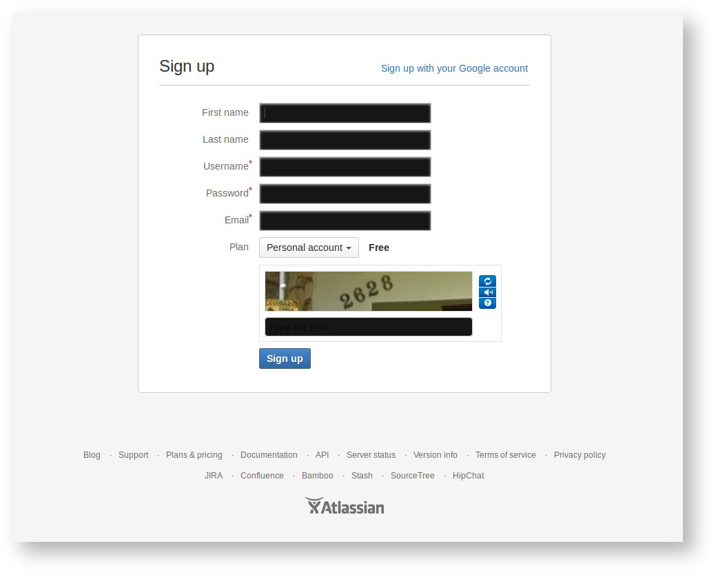 如果您不想创建新帐户,Bitbucket 支持 OpenID,因此允许使用 Google、Facebook、Twitter 或 GitHub 帐户登录。