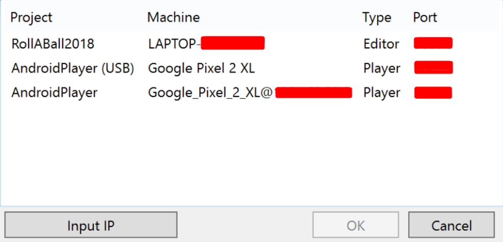 To attach your code editor to the Unity Player, in your code editor, select the IP address (or machine name) and port of your Player. For an example of where to find this in Visual Studio, see Attach Visual Studio to the Unity Editor.