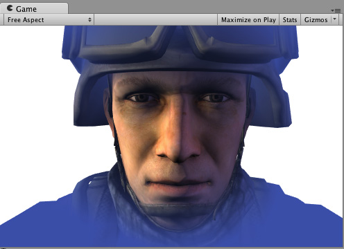 因为它将反射颜色指定为 __Emission__,所以我们得到了一个非常闪亮的士兵: