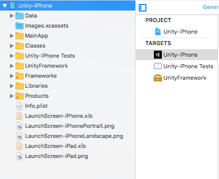 每个生成的 Unity iOS Xcode 项目都具有以下结构和目标: