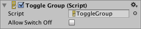 与其他 UI 元素不同,具有开关组 (Toggle Group) 组件的对象不必是画布对象的子项,但开关本身仍然是其子项。