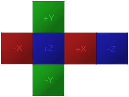 要创建一个 6 面天空盒,您需要六个单独纹理,这些纹理组合在一起可映射到如下网络布局: