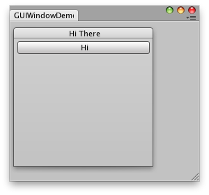 // All GUI.Window or GUILayout.Window must come inside here windowRect = GUILayout.Window(1, windowRect, DoWindow, "Hi There");