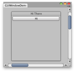 // Same code as before - make a window. Only now, it's INSIDE the scrollview BeginWindows(); windowRect = GUILayout.Window(1, windowRect, DoWindow, "Hi There"); EndWindows();