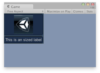 void OnGUI() { if (!tex) { Debug.LogError("Missing texture, assign a texture in the inspector"); } GUILayout.Box(tex); GUILayout.Box("This is an sized label"); } }