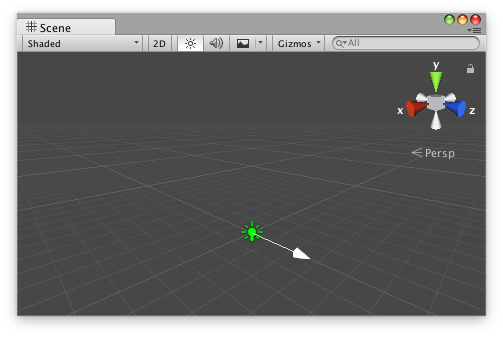 此方法将会在屏幕上绘制一个可拖动的 3D 手柄。该手柄不会移动并将会上下缩放单个浮点。\ \ \ 场景视图中的缩放值手柄(箭头端盖作为手柄)。\ \ 将以下脚本作为 LightColorLerp.cs 添加到 Assets 文件夹,然后将 LightColorLerp 组件添加到场景中的对象。