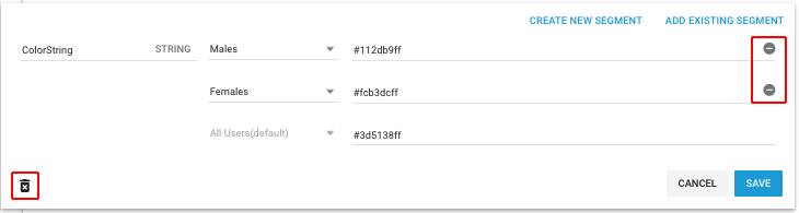4.要删除特定细分段的值,请单击编辑视图右侧的__减号__按钮,然后单击 Save。(无法删除默认的 All Users 值。)