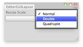 void OnGUI() { selectedSize = EditorGUILayout.IntPopup("Resize Scale: ", selectedSize, names, sizes); if (GUILayout.Button("Scale")) ReScale(); }