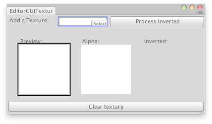 public class EditorGUITextures : EditorWindow { Texture2D texture = null; static Texture2D invertedTexture; bool showInverted = false;