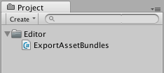 • 在 Project 视图中名为 Editor 的文件夹内创建一个名为 ExportAssetBundles.cs 的 C# 脚本文件。