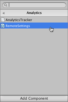 6.单击 Add Component 以将 Remote Settings 组件添加到游戏对象。