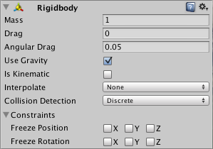 | Drag | 根据力移动对象时影响对象的空气阻力大小。0 表示没有空气阻力,无穷大使对象立即停止移动。 |