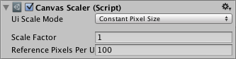 使用 Constant Pixel Size 模式时,可在屏幕上按像素指定 UI 元素的位置和大小。这也是画布在未附加任何画布缩放器时的默认功能。但是,借助画布缩放器中的“Scale Factor”设置,可以向画布中的所有 UI 元素应用常量缩放。