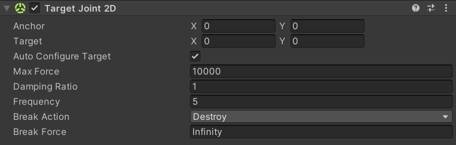 | Target | Define where (in terms of x, y-coordinates in world space) the other end of the joint attempts to move. |