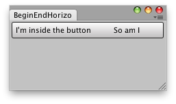 public class BeginEndHorizontalExample : EditorWindow { [MenuItem("Examples/Begin-End Horizontal usage")] static void Init() { BeginEndHorizontalExample window = (BeginEndHorizontalExample)GetWindow(typeof(BeginEndHorizontalExample)); window.Show(); }