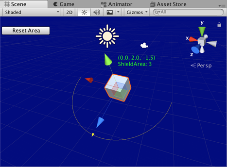 [ExecuteInEditMode] public class HandleExample : MonoBehaviour { public float shieldArea = 5.0f; }