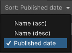 You can always sort in ascending or descending order on the name of the feature setA feature set is a collection of related packages that you can use to achieve specific results in the Unity Editor. You can manage feature sets directly in Unity’s Package Manager. More info