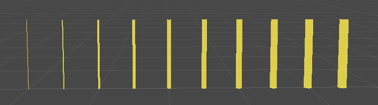 // Displays lines of various thickness in the scene view [CustomEditor(typeof(ExampleScript))] public class ExampleEditor : Editor { public void OnSceneGUI() { var t = target as ExampleScript; var tr = t.transform; var position = tr.position; Handles.color = Color.yellow; for (int i = 0; i < 10; ++i) { var linePos = position + Vector3.right * (i * 0.5f); Handles.DrawLine(linePos, linePos + Vector3.up, i); } } }