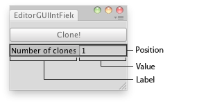 void OnGUI() { //The field which allows you to input the amount of clones of a GameObject you want clones = EditorGUI.IntField(new Rect(0, 35, position.width, 15), "Number of clones:", clones);